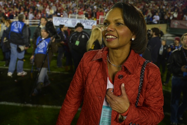 Rice may not know a lot about college football. But I’ll say this: if she was able to navigate through murky diplomatic waters with the likes of Russia, Iran, Iraq’s Saddam Hussein, Venezuela’s Hugo Chavez, and help manage egos in the George W. Bush administration while serving as the National Security Advisor AND Secretary of State, then I am pretty confident that not only would Rice be able to get up to speed on all that is college football, that she will be able to hold her own in a room full of good ‘ol boys in selecting the best four (which will eventually become eight) college football teams to participate in the playoffs.