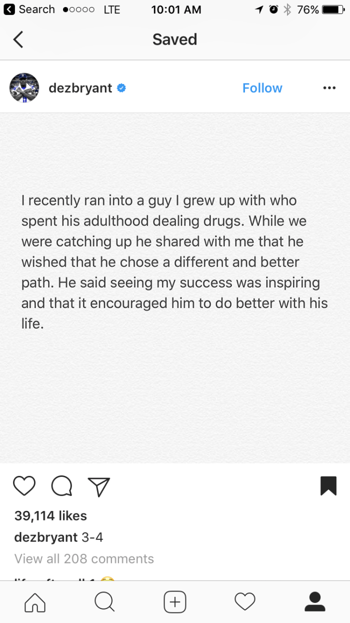 So I would advise Dez that while he does have valid points on accountability, that he should put his money where his mouth is, and offer a helping hand to those in need who WANT to “make it”. Our community would be MUCH better for it.